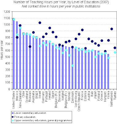 Something doesn't seem right here. How can Korea possibly have less teaching hours than, say, Australia? It seems to be true that the newbies have it tougher than the veterans, but regardless they all work on Saturdays, many of them teach 'optional' after-school programs and the vacations are shorter. So what gives?