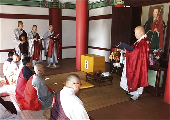 Story #1, about the South Korean monks visiting North Korea for a chesa for the founder of their order, is a repeat from yesterday, when the monks had headed off for Kaesŏng. But I liked the picture below so much, that I decided to run it again, post-ceremony. Indeed, the room pictures below may be the only one in North Korea where the dominant portrait is not the Dear Leader or the Great Leader. This all makes me wonder how much or little religious freedom this isolated group has.