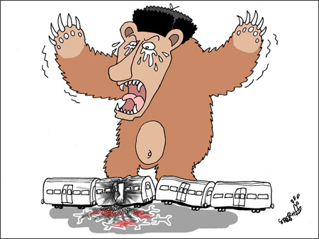 As I wrote at Korean Rum Diary, my interpretation of the above cartoon is that the bear represents Russian imperialism, not merely Russia, and the ongoing separatist battles inside the Caucasus are a direct result of that imperialism, so this seems to be suggesting that the Russian bear is crying over something that is — to some degree — of its own making.